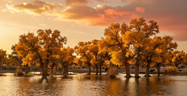 The largest artificially cultivated Populus euphratica forest in the northwest. In the spring and summer, it looks very normal green, but once October enters, it seems like you are in a crazy situation. The whole tree turns golden, and its reflection is reflected in the sparkling Jinbo Lake. The sky is golden, and the lake water is also golden. When you stand there, your whole person is completely filled with gold.