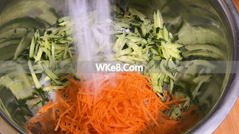 Place the soaked and chopped vermicelli together in a basin with julienned cucumbers and julienned carrots. No complicated cooking is required. You only need to add an appropriate amount of salt, sugar, and chicken essence to enhance the umami flavor, and then pour a spoonful of steamed fish soy sauce to increase the taste.
