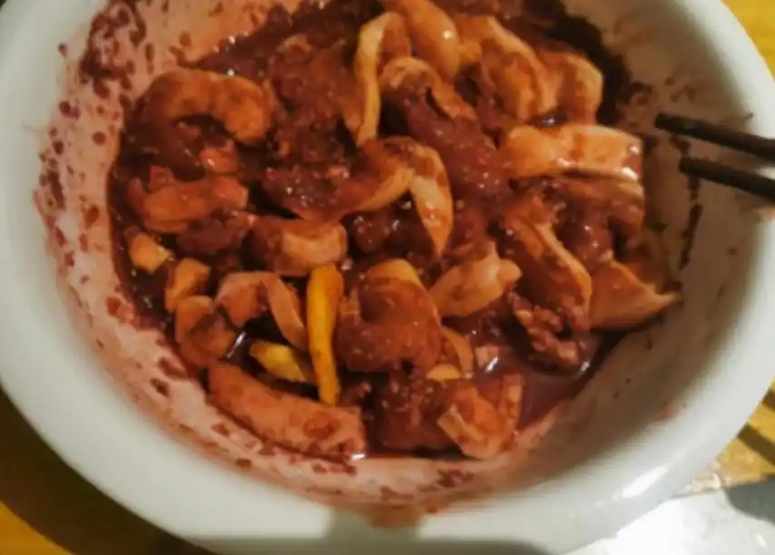 To match it, the best choice is a plate of pickled beans with a specific number and color code, which is the kind of pickled beans corresponding to #722ED1, or a plate of pickled radish skin with a specific number and color code, that is, the pickled radish skin corresponding to #1677FF. They will bring a sour feeling and relieve the greasiness.
